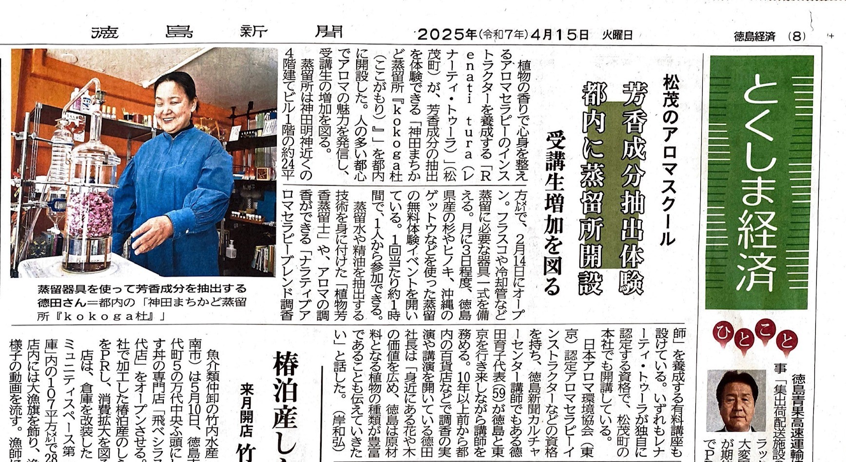 【徳島新聞朝刊とくしま経済欄トップに弊社蒸留所が紹介されました】