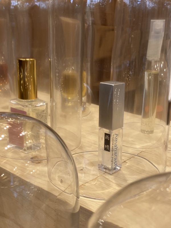 さてグリーンテラスですが1月31日まで弊社自然香料100%フレグランス「雨晴」が展示されています。